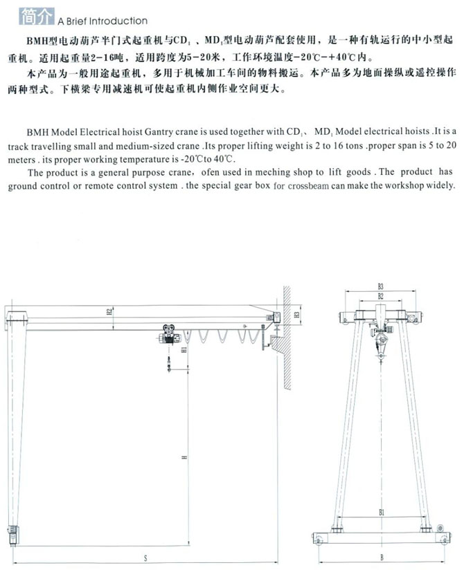 MHB型2-10t电动葫芦半门式起重机